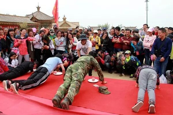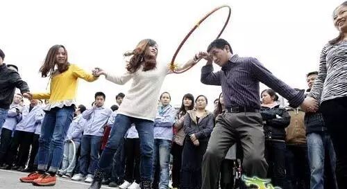设4组,每组2人。所有的参赛者均要带上游戏眼镜,第一棒原地大象转5圈,滚着铁环跑向第二棒并与之击掌接力,第二棒原地大象转5圈,拿到指定位置的苹果,快速折返跑回终点夺下旗子,用时最短的一组获胜。 奖品:优质大米1袋呼啦圈传递 设3组,每组8人,手拉手站成一排,在首位手臂上套上呼啦圈。在不许用手的情况下,把呼啦圈穿过每个人的身体,用时最短的组获胜。 奖品:调味壶俯卧撑吃苹果设2组,每组4人。参赛者以俯卧撑的方式,吃掉摆在自己面前果盘里的苹果,吃得最快者获胜。 奖品:优质大米1袋