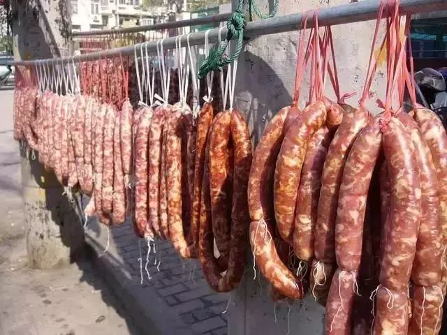 风干香肠最讲究天气,最适宜风干香肠的日子是气温在15℃以下的晴天,湿度60%以下,最好挂在北面通风处,不要让太阳直射香肠表面。眼下,到了灌香肠最好的时节!