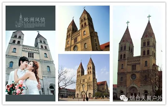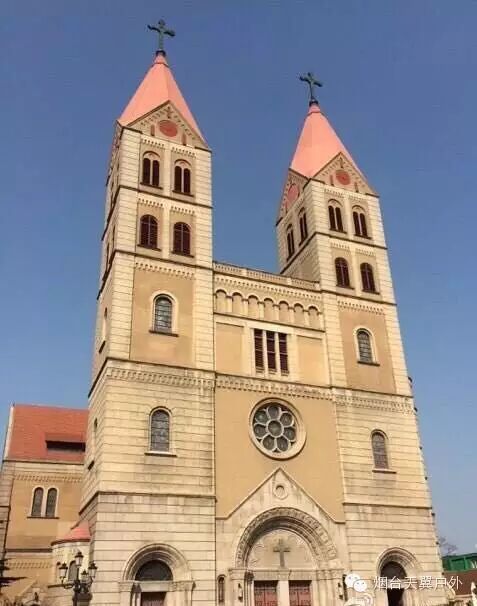 青岛天主教堂本名圣弥厄尔教堂,始建于1932年,混合了哥特式和罗马式的建筑风格。教堂平面呈拉丁“十”字形,两侧有两座对称而又高耸的钟塔,高度为60米,塔内上部悬有4个巨大铜钟。大门上方有一巨大的玫瑰窗,两侧各耸立起一高4.5米的十字架。屋顶覆盖红瓦,气势庞大。如果是在薄雾笼罩的清晨,踏在青色的石头路上,静静地欣赏位于高处的教堂,则别有一番滋味。